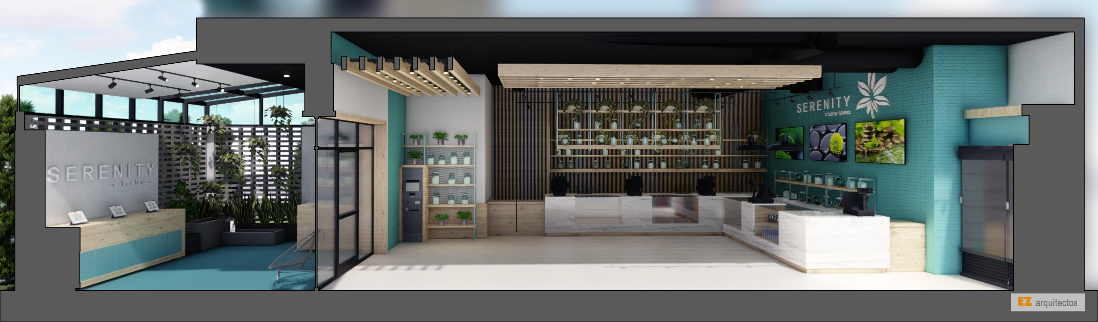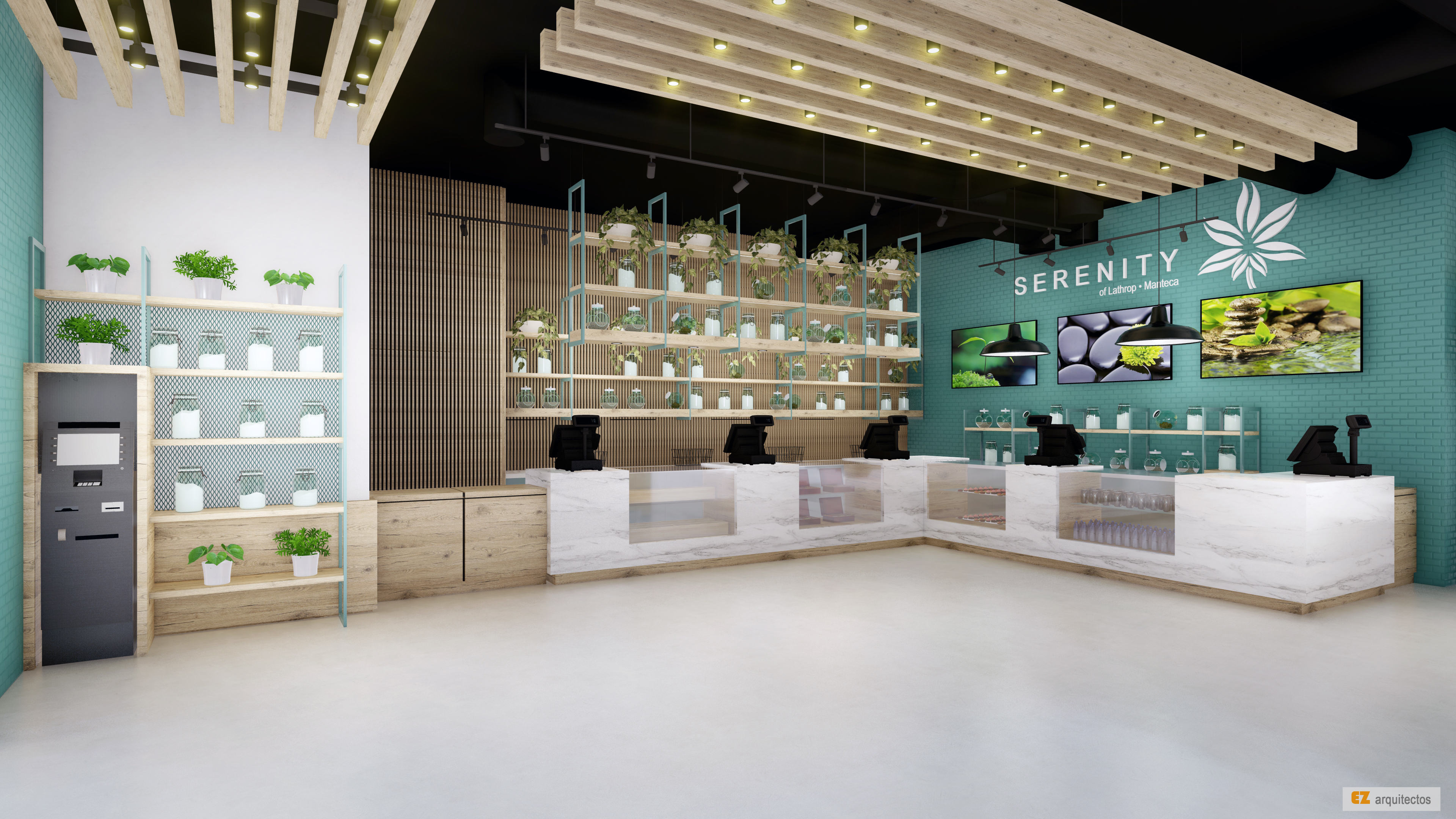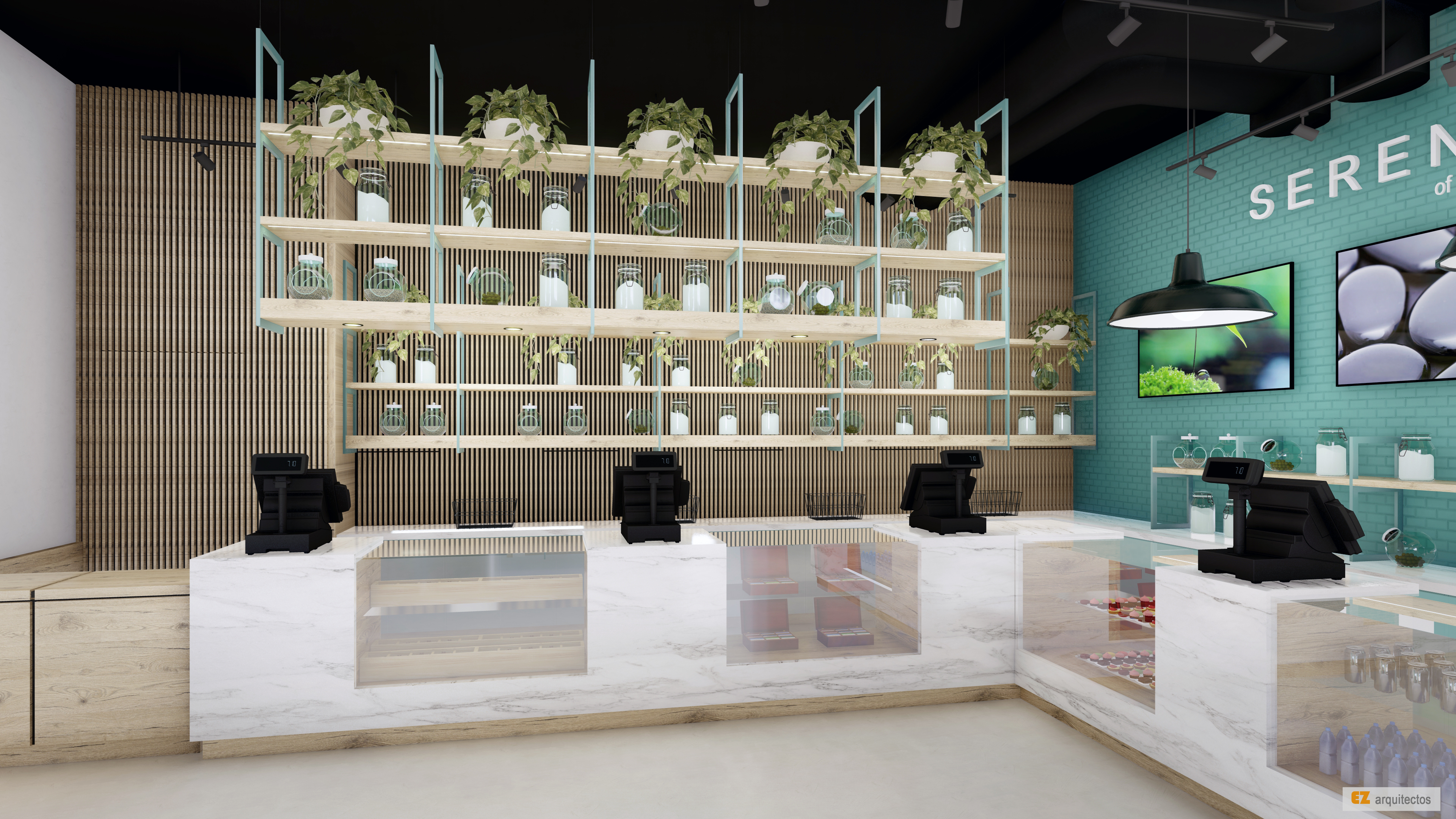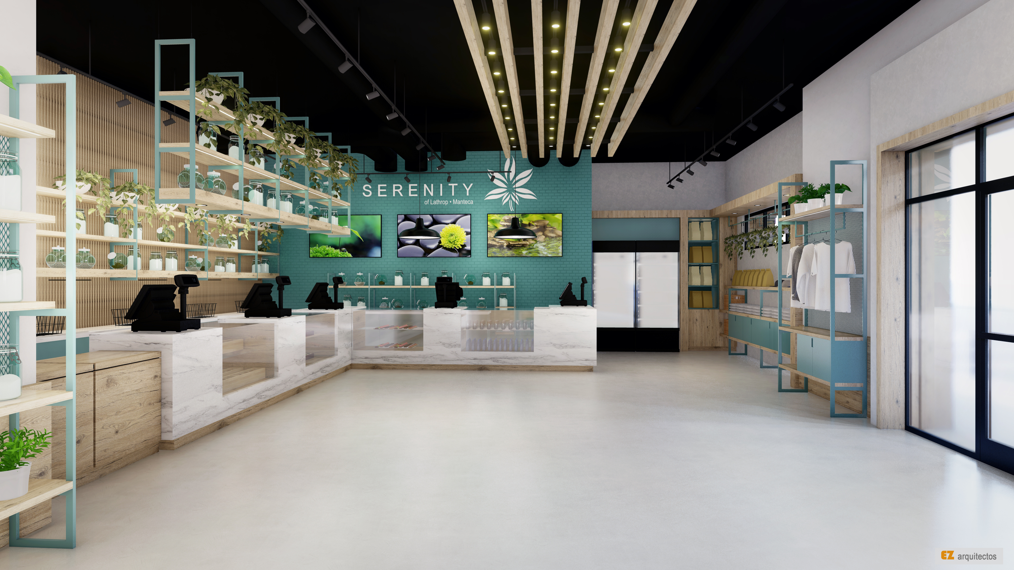 Diseño conceptual y arquitectónico para tienda de artículos naturistas.