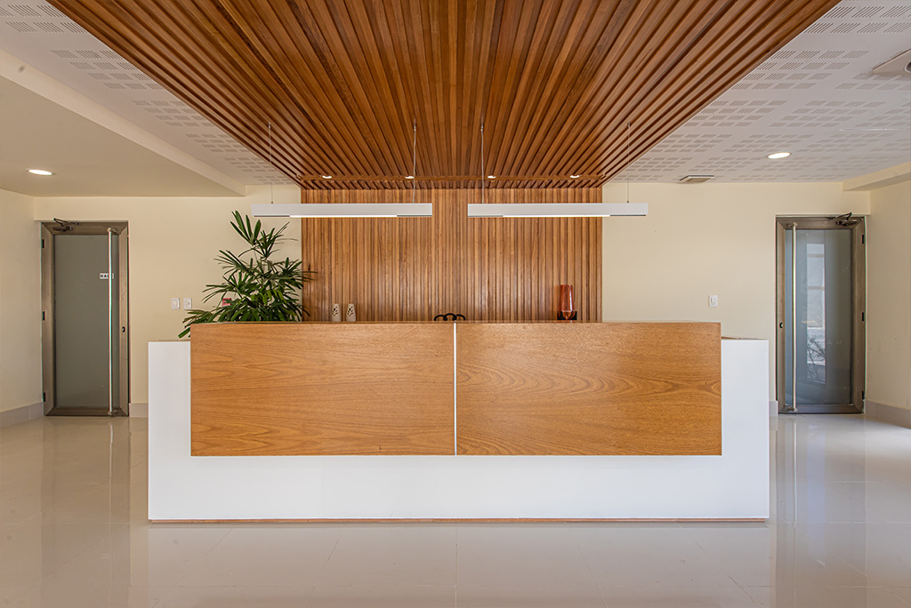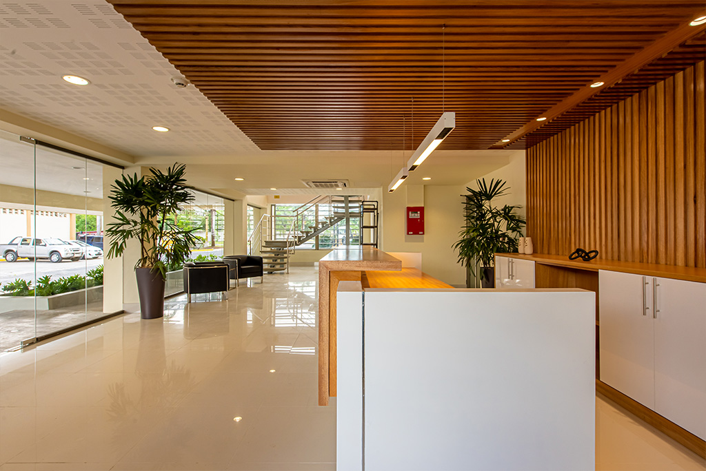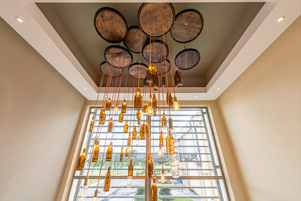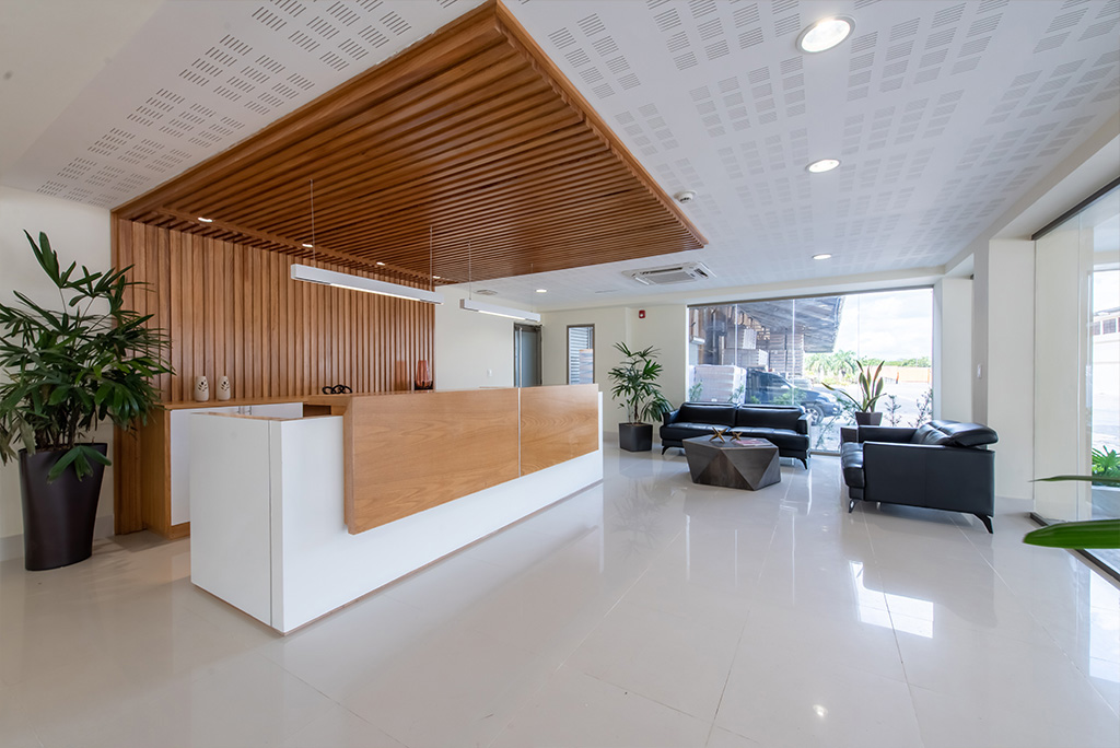 Esta ampliación de las oficinas implicó la construcción de un módulo nuevo que está compuesto por una gran sala de reuniones, recepción y una escalera a doble altura con una lámpara de botellas de Ron Barceló hecha por nosotros. La creación de espacios abiertos e iluminados apoyados con una paleta de colores tierra forman parte del concepto principal del proyecto.